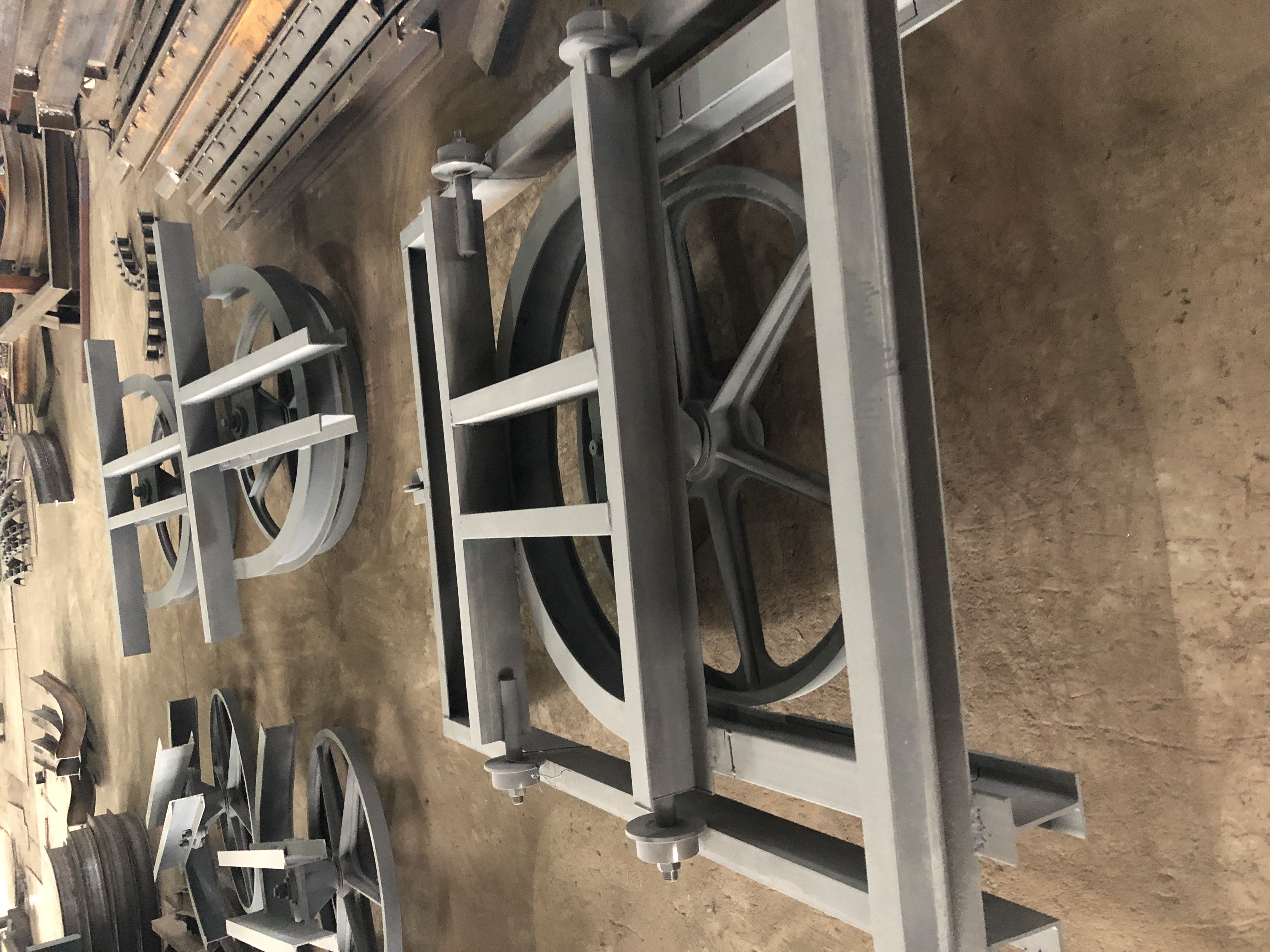 張緊裝置是保證鏈條張緊,補(bǔ)償安裝誤差和鏈條在拉力作用下伸長,磨損及溫差作用下引起的伸縮,保證驅(qū)動裝置出繞點有一個初張力,消除整個線路中產(chǎn)生負(fù)的裝置。XT100、XT160普通懸掛輸送機(jī)的張緊裝置均為重錘式,其依靠該裝置上的配重盤重量自動調(diào)整鏈條的松緊,其中又可分為單輪張緊和雙輪張緊兩種,張緊應(yīng)放在張力較小的地方,一般布置在靠近傳動裝置后面的較低處,靠近張緊之后,不應(yīng)有較大的載重下降坡段。