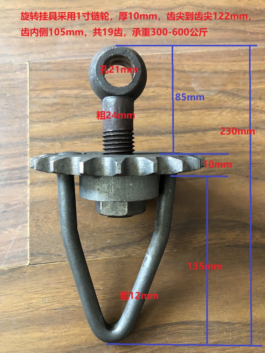 旋轉(zhuǎn)吊具:軌道上裝有吊具轉(zhuǎn)向器,每次可自動旋轉(zhuǎn)360度(每一次吊具相連使掛上的工件能自動作360°的轉(zhuǎn)動)。 旋轉(zhuǎn)吊具上也可配各式托油盤,圓盤可防止油污、灰層掉落到產(chǎn)品上。各式旋轉(zhuǎn)吊具,可根據(jù)現(xiàn)場需要進(jìn)行選擇,可按照需要訂做訂加工。