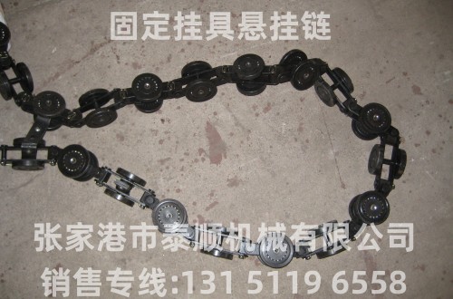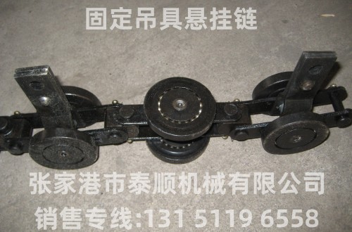 吊具可分為固定式吊具和可拆式吊具(活絡(luò)吊具)兩種,我廠(chǎng)生產(chǎn)的QXG系列懸掛輸送機(jī)都采用裝拆方便的可拆式吊具??刹鹗降蹙呓Y(jié)構(gòu)有普通型,Y型以及梁式等三種樣式。(固定吊具鏈條 可根據(jù)客戶(hù) 要求定做) 旋轉(zhuǎn)吊具:軌道上裝有吊具轉(zhuǎn)向器,每次可自動(dòng)旋轉(zhuǎn)360度(每一次吊具相連使掛上的工件能自動(dòng)作360°的轉(zhuǎn)動(dòng))。 旋轉(zhuǎn)吊具上也可配各式托油盤(pán),圓盤(pán)可防止油污、灰層掉落到產(chǎn)品上。各式旋轉(zhuǎn)吊具,可根據(jù)現(xiàn)場(chǎng)需要進(jìn)行選擇,可按照需要訂做訂加工。 十字吊具需與Y型吊具配合使用,鏈條運(yùn)作時(shí),十字支腳碰到裝在特定位置的吊具轉(zhuǎn)向器,可使懸掛工件做90度旋轉(zhuǎn)。